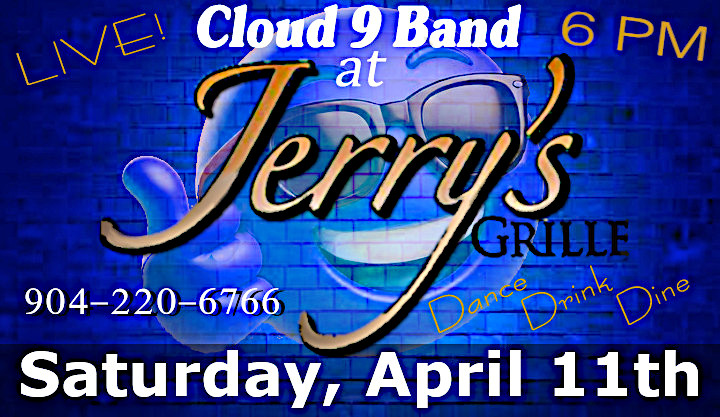 If you enjoy friendly smiles, like to socialize, eat, drink, be merry, sing along with (and perhaps even shimmy, shuffle, and shake to) live music... well then Jerry's Grille is a great place to get your fill of all the aforementioned and MORE (especially when The Cloud 9 Band is in the house :-). We're excited to announce we're returning to this favorite local spot on Saturday, April 11th starting at 6 PM! So now that you've got the 411, we hope you'll mark your calendars and that we'll SEE YOU THERE! !!!
